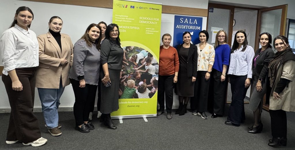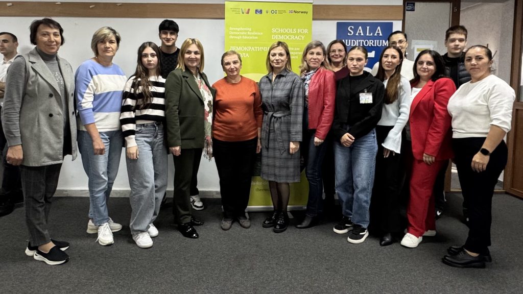 În perioada 27–29 octombrie 2025, la Chișinău a avut loc programul de formare destinat celor 18 echipe școlare selectate în cadrul inițiativei „Școli pentru Democrație: Consolidarea rezilienței democratice prin educație”, implementată în Republica Moldova. Evenimentul a fost organizat de Centrul European Wergeland în colaborare cu PE ”Pas cu Pas„ Moldova.